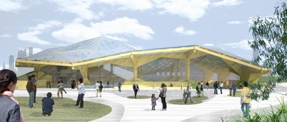 在上海世博會期間,挪威將在世博浦東園區(qū)C片區(qū)建設(shè)占地3000平方米的自建館。挪威此次以“挪威•大自然的賦予”為主題參展上海世博會,展館將由15棵巨大的“樹”構(gòu)成,模型樹的原材料來自木頭和竹子,并可在展后再利用,充分體現(xiàn)了 “可持續(xù)發(fā)展”的理念。