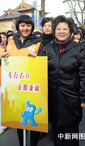 上海世博會倒計時四百天來臨之際,位于上海繁華城區(qū)的靜安區(qū)啟動“公共秩序日”集體行動,聚焦行路、駕車、停車、讓座、乘車、先下后上、乘電梯等七大類公共場所文明行為,八支由社區(qū)居民、郵政人員、學生等組成的志愿者服務隊在此間亮相。