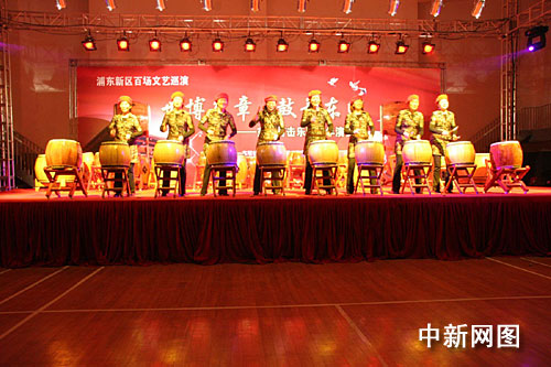 中新網(wǎng)上海4月8日電 (孫璐 徐云)隆隆鼓聲,歷來是最具有中華民族傳統(tǒng)特色的音樂,而這樣一種實木、清漆、渾身盛唐敦煌風韻的“東明鼓”,更是風格獨特。隨著上海社區(qū)首支鼓樂隊“東明鼓”的鼓聲響起來,上海浦東新區(qū)各社區(qū)處處洋溢著居民們對2010年上海世博會的熱愛和對美好未來的追求。