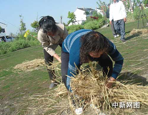 連日來,上海市及各區(qū)縣紛紛舉行各種形式的慶;顒,迎接二0一0年上海世博會開幕倒計時一周年。在今天下午的廊下鎮(zhèn)記者看到,一個多由農民參加,頗有江南鄉(xiāng)村特色的體育節(jié)拉開了帷幕。據主辦方介紹,這個名為“健康迎世博”的廊下鎮(zhèn)第二屆鄉(xiāng)村體育節(jié),旨在表達當地農民希望通過體育運動來迎接世博會開幕的心情,同時也為“五一”假期里來此郊游的滬上市民提供一個參與鄉(xiāng)村游戲的舞臺。將持續(xù)至5月3日的本屆鄉(xiāng)村體育節(jié),設立的十個體育游戲項目,多是從日常的農活中提煉而來的,包括捆稻草、插秧、搓跳繩、搶在暴風雨前、拋接米袋和運磚造房子等,充滿了鄉(xiāng)村野趣。