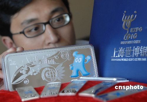5月22日,由上海世博會(huì)事務(wù)協(xié)調(diào)局授權(quán)、中國(guó)印鈔造幣總公司鑄造發(fā)行的一款以世博會(huì)為題材的銀條——上海世博銀將于近日在交通銀行指定網(wǎng)點(diǎn)銷售。據(jù)了解,本次即將發(fā)售的上海世博銀以上海世博會(huì)為題材,設(shè)計(jì)上則融入了世博會(huì)吉祥物、地球與花朵、城市場(chǎng)景等眾多元素,由人和城市場(chǎng)景共同組成“EXPO”圖案也完美體現(xiàn)了此次上海世博會(huì)的“城市”主題。中新社發(fā) 遠(yuǎn)舟 攝