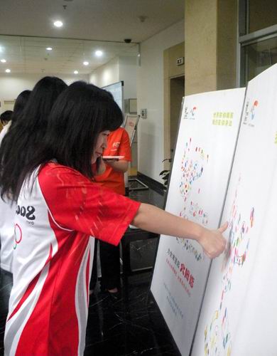 5月23日,恰逢北京奧運火炬上海站傳遞一周年之即,中國火炬手聯(lián)盟上海分會在位于浦東新區(qū)的世博會志愿者工作站舉辦了“情系世博盛事,再傳奧運輝煌”的公益活動,來自全國各地的近三十位2008北京奧運火炬手提出倡議,申請加入2010年上海世博會志愿者的行列,響應(yīng)“世界在你眼前,我們在你身邊”的志愿者口號,延續(xù)“和諧關(guān)愛”的奧運火炬手精神。