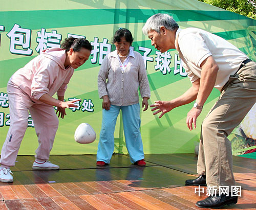 中新網(wǎng)上海6月4日電(徐云 鄭瑩瑩)“橡皮筋”、“彈皮弓”、“滾鐵環(huán)”等具有老上海情結(jié)的玩樂、健身項目已逐漸被歷史封存淡忘,而20多年前當(dāng)時在一些街道和國有企業(yè)曾風(fēng)靡一時的粽子球可能讓一些上了年紀(jì)的人仍記憶猶新。