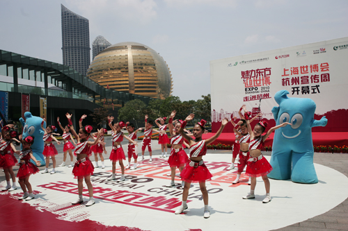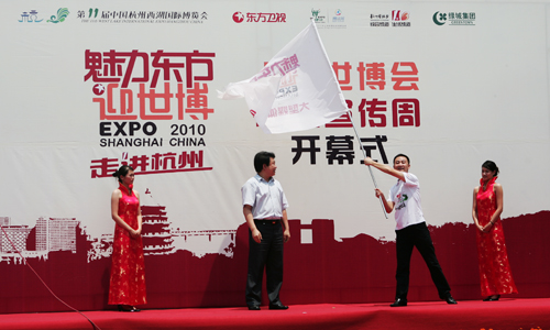 6月20日,繼杭州推廣周在上海世博會(huì)展示中心精彩亮相之后,滬杭兩地今天再掀宣傳高潮。上午11點(diǎn)10分,上海世博會(huì)杭州宣傳周開幕式暨《魅力東方迎世博——走進(jìn)杭州》直播活動(dòng)在錢江新城城市陽(yáng)臺(tái)舉行。本次宣傳周以“精彩世博•品質(zhì)杭州”為主題,展示了上海世博會(huì)的最新籌辦進(jìn)展和杭州積極參與世博會(huì)的亮點(diǎn)。