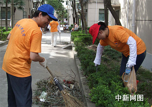 中新網(wǎng)上海7月15日電(鄭瑩瑩 田佳)十五日是上海迎世博的“環(huán)境清潔日”,一大早,毗鄰中國(guó)館的浦東世博社區(qū)周家渡街道就開始整潔社區(qū)“容貌”大作戰(zhàn),百余名志愿者身著橙色衣服,清理社區(qū)衛(wèi)生死角,讓社區(qū)內(nèi)刮過一陣“清潔風(fēng)”。