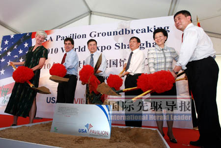 17日,今夏入伏后的第4天,上海最高氣溫升至36攝氏度。幾乎是在“烘烤”的氣氛下,美國商務部長駱家輝、中國商務部副部長馬秀紅、上海市常務副市長楊雄以及剛被奧巴馬政府任命為上海世博會美國展區(qū)總代表的何塞·維拉里爾、美國駐滬總領事康碧翠、上海世博會事務協(xié)調局局長洪浩等共同為美國館奠基培土。