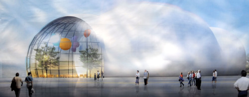 9月13日拍攝的上海世博會世界氣象館“云中水滴”效果圖