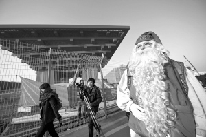 花白胡子、紅色大褂、特色垮褲……昨天下午,一名來自芬蘭的“圣誕老人”到訪上海世博園區(qū),吸引了不少建設(shè)者的目光。他和工人們握手聊天、合影留念,還饒有興致地找到芬蘭館在建的特色桑拿浴室,表示明年很想在這里蒸一蒸桑拿。