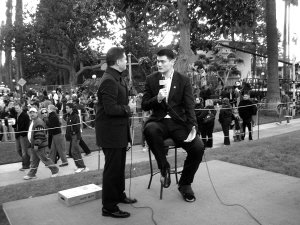 KTLA電視臺是全世界三家獲得帕薩迪那玫瑰花車巡游直播權(quán)的電視臺之一。這次直播采訪一共進(jìn)行了3分鐘。