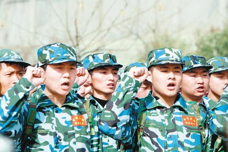 隊(duì)伍第一排中間的保安挺顯眼,白白凈凈,一臉的書生氣。他叫侯澎,今年24歲,剛從西安鐵路職業(yè)技術(shù)學(xué)校電氣自動(dòng)化專業(yè)畢業(yè),為了參加上海世博會(huì)安保,侯澎放棄了專升本的機(jī)會(huì)!案渌(duì)員相比我在專業(yè)技能方面有些差距,但經(jīng)過三個(gè)月的強(qiáng)化訓(xùn)練,我現(xiàn)在自信十足,恨不得馬上飛到上海!”(王飛 王婷)
