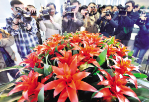 “中國(guó)紅”是鮮花港科技興市重大攻關(guān)項(xiàng)目的最新成果。這一鳳梨花新品色澤純正花型飽滿,葉片大花期長(zhǎng),環(huán)境適應(yīng)性強(qiáng),是較理想的室內(nèi)用花。(薛慧卿 孫中欽)