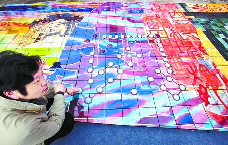 3月29日上午,在三彩藝窯廠,記者看到,工作人員正在對(duì)一塊塊壁畫進(jìn)行最后的清掃、粘貼。郭愛和介紹,這幅壁畫長(zhǎng)26米、高3.2米,整幅壁畫緊扣世博會(huì)中國(guó)河南館“中國(guó)之中,城市之源,文明之根,中原崛起”的主題,用洛陽(yáng)三彩作為畫面主體背景色調(diào),將河南的歷史和未來(lái)通過(guò)白描、寫意、油畫等各種畫種體現(xiàn)出來(lái),是“城市,讓生活更美好”這一世博會(huì)主題的最好體現(xiàn)。