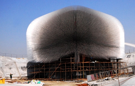 被中國公眾昵稱為“蒲公英”的英國館已“綻放”待客。在初春的寒風中,這座造型別致的展館滿身的“觸須”搖曳生姿,充滿動感。