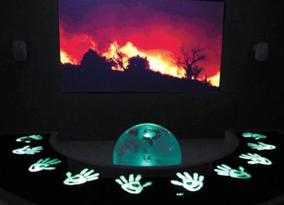 從“希臘的一天”中,游客看到了城市生活的繁忙與樂趣,也發(fā)現(xiàn)城市面臨的挑戰(zhàn)與難題。就像在“生態(tài)”那一章中:當5位游客同時把雙手按在互動桌上時,屏幕上觸目驚心的環(huán)境污染立即消失,取而代之的是希臘為應對挑戰(zhàn)而做的努力,如臨海而建的風能發(fā)電場、居民住宅上的太陽能屋頂?shù)。小小的“互動”告訴我們:生態(tài)城市僅僅依靠一個人的努力是不夠的,同心協(xié)力,才會有“更好的生活”。(劉穎)