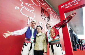 阿爾巴尼亞館的外墻,是一片耀眼的國(guó)旗紅;一只展翅的雄鷹,彰顯出山地民族的剛毅和堅(jiān)韌。這個(gè)地中海國(guó)家有個(gè)流傳千年的傳說:上帝造物時(shí),安排好地球上陸地、海洋、平原、山川之后,口袋里還剩下一些石塊,他順手扔去,石子變成了連綿起伏的山脈——阿爾巴尼亞。
