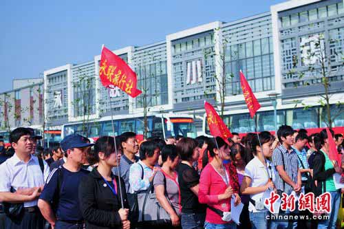 中新網(wǎng)張家港5月25日電(李克祥)“放眼看世界,享受新生活。”今天清晨,以此為主題的“萬(wàn)人游世博”在張家港永聯(lián)村正式啟動(dòng),由350名村民職工代表組成的首發(fā)團(tuán),登上開(kāi)往上海世博園區(qū)的“幸福”大巴,實(shí)現(xiàn)不出國(guó)門(mén)的“出國(guó)”開(kāi)眼界之旅。