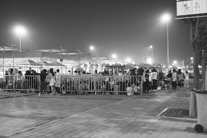 500多人在圍欄邊席地而坐,或聊天或瞌睡,為的是上午9時開園后第一時間進入……這是今晨1時,記者在世博園區(qū)浦東上南路入口處看到的情形。同樣的一幕,也出現(xiàn)在了距離文化中心較近的長清路、洪山路、高科西路等入口,總?cè)藬?shù)不下2000人。如此場面,令值夜班的安保人員傻了眼,“開園第一天也沒這么早來的,有的昨天還沒閉園就來了!”