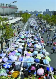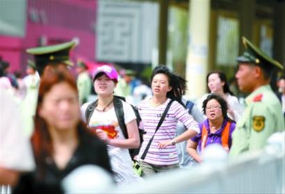 需要注意的是,如果想在這個區(qū)域離隊,在和工作人員說明后,工作人員會在游客的世博門票上做上記號,但回來后只能從原地點歸隊。因此,一些結隊的游客,單人離隊后,回來會發(fā)現(xiàn)其他人已經(jīng)移動到前面,但自己只能排回原地點。工作人員說,如果讓游客從其他地點插入隊伍,工作人員無法監(jiān)督,會造成秩序的混亂,因此請各位游客諒解。