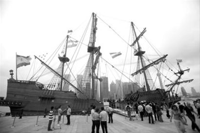 昨天下午,當 “安達盧西亞”號在上海國際客運中心緩緩靠岸時,沒有汽笛的喧囂,沒有引擎的轟鳴,只有岸上熱烈的掌聲和船員們歡快的笑聲。這艘保持了17世紀馬尼拉帆船外形的三桅大船從去年12月開始建造, 3個月前從西班牙南部的塞維亞港口出發(fā),一路穿越地中海、紅海、亞丁灣和印度洋,終于駛?cè)朦S浦江。