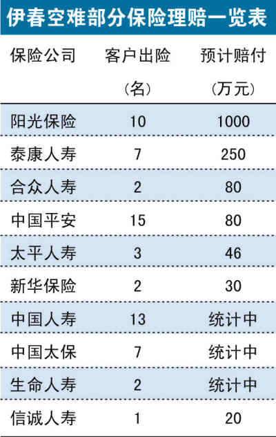 泰康人壽則表示,已確認(rèn)有7名客戶出險,其中有5名客戶不幸罹難,為團險和創(chuàng)新網(wǎng)銷客戶,每人保額50萬元,累計預(yù)計賠付金額250萬元。截至目前,陽光保險累積預(yù)計賠付可能是最多的公司,有10名客戶遇難,預(yù)計賠付超過1000萬元。