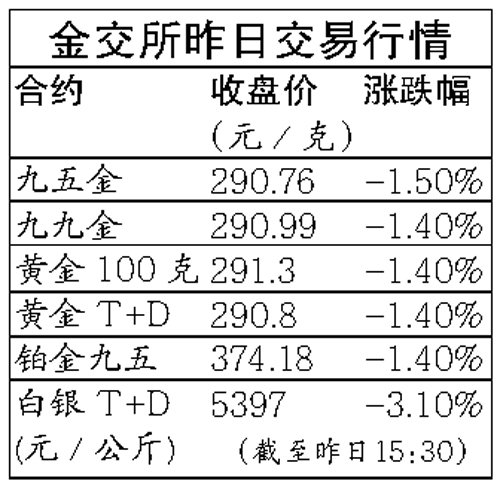 金價(jià)從上周五開始“四連跳”,受此影響,昨日國內(nèi)金價(jià)也震蕩收低,跌幅達(dá)1.44%。