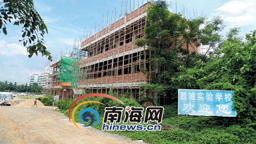 昨天下午,記者趕到這2棟3層樓所處的位置看到:這2棟3層樓的違建建在海口南海大道海秀鎮(zhèn)新村西城實驗學校的門口,與海秀鎮(zhèn)政府相鄰。目前這2棟房子的主體已完工,工人們還搭著腳手架對樓房的外墻及室內(nèi)進行粉飾裝修。