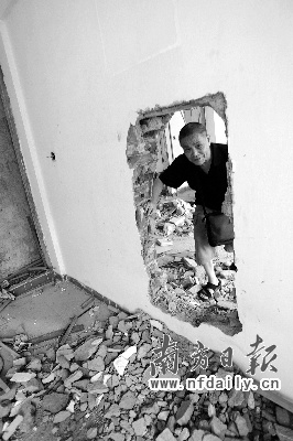 “目前24棟已經(jīng)完全被拆除,25、26、27棟主體結(jié)構(gòu)被破壞,29棟拆成了‘神仙洞’,31棟拆得漏雨,被稱為‘水簾洞’,幾十戶只好出去租房。在2009年11月還有50余戶居住、30多戶業(yè)主未簽約的情況下就開始拆遷,破壞小區(qū)達74天之久,已經(jīng)嚴(yán)重違法。”顧先生表示。