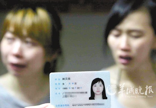 2007年8月底的一天,林貝欣下班回到放東西的倉庫時,發(fā)現(xiàn)自己掛在墻上的包包不見了,里面有手機、錢包以及一張二代身份證!皯岩墒潜恍⊥刀⑸,趁人不注意溜進倉庫偷走的”。因為工作忙,脫不開身無法回老家,林貝欣就把第一次辦身份證時照的相片寄回老家,讓父親代為補辦了二代身份證。所以林貝欣兩張二代身份證上的照片是一樣的。林貝欣戶籍所在地的陸豐瀛北派出所也證明,2007年9月9日林貝欣確曾因身份證遺失在該所申請補辦。