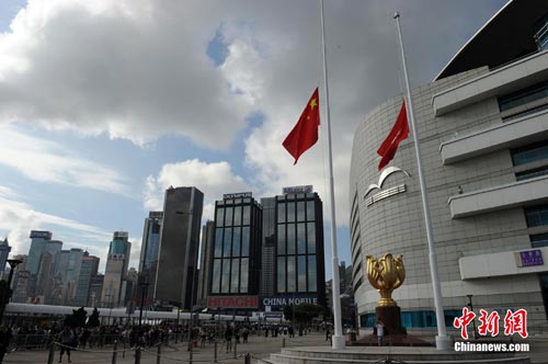 根據(jù)國(guó)務(wù)院通知,當(dāng)日所有特區(qū)政府及中央駐港機(jī)構(gòu)的國(guó)旗下半旗致哀。而港府也發(fā)布,默哀期間,除緊急及出入境服務(wù)外,其它政府服務(wù)暫停;當(dāng)值的政府人員在辦公地點(diǎn)參與默哀。
