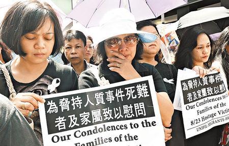 中新網(wǎng)8月30日電 據(jù)香港星島日報報道,香港特區(qū)立法會各政團(tuán)發(fā)起“悼念菲律賓遇難港人”大游行的同時,多個菲律賓團(tuán)體二十九日上午也舉行祈禱會表達(dá)哀傷,聚集近四百人,悼念馬尼拉挾持人質(zhì)事件的死難者。菲律賓傭工協(xié)會發(fā)言人表示,菲律賓人與港人一樣對事件感到哀傷和憤怒,要求當(dāng)局徹查事件。