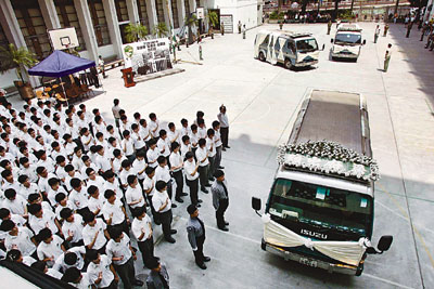 中新網9月19日電 據(jù)香港文匯報報道,在菲律賓人質慘劇中遇害的梁家3父女梁錦榮、頌詩及頌儀18日舉殯,全程有500名親友、公眾人士、師生送別。靈柩在移送火葬場前,先到梁錦榮的母校。校園內響起“先短后長”的下課鐘聲,為肅穆的氛圍加添哀愁,標志著3父女人生課堂結束。無比堅強的梁太吳幼媛,按捺不住哀傷情緒,低頭拭淚。梁錦榮哥哥在喪禮結束后,特地叮囑各界忘記悲痛、收拾心情,積極面對未來。出席公祭的市民則認為,事件展露港人人性的光輝,梁家無私的愛更讓人刻骨銘心。