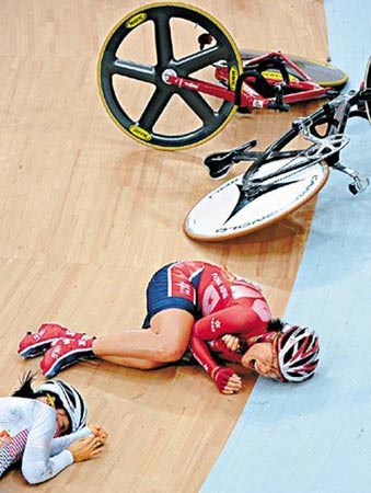 中新網(wǎng)11月17日電 據(jù)香港《星島日?qǐng)?bào)》報(bào)道,廣州亞運(yùn)女子場地記分賽,出現(xiàn)振奮人心的一幕。有“女版黃金寶”之稱的香港自行車選手黃蘊(yùn)瑤,向世人示范了什么才是鋼鐵意志,她在比賽中段遇上嚴(yán)重意外,身體更被單車兩度輾過,但仍堅(jiān)忍肋骨骨折及肺氣腫傷痛繼續(xù)比賽,終為香港取得一面“血淚銀牌”。頒獎(jiǎng)后須坐輪椅離場的黃蘊(yùn)瑤不時(shí)激動(dòng)痛哭,令全場所有人動(dòng)容。