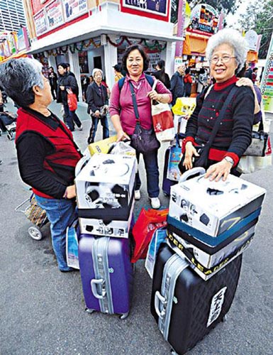 中新網(wǎng)12月12日電 據(jù)香港星島日?qǐng)?bào)報(bào)道,內(nèi)地通脹率持續(xù)高企,吸引大批內(nèi)地旅客赴港“掃貨”,一出手便是“成千上萬(wàn)”,十一日更有內(nèi)地客“豪擲”三十二萬(wàn)元(港元,下同)買鮑參翅肚;不少內(nèi)地旅客表示,專程到工展會(huì)是因?yàn)橄愀圪?gòu)物“貨真價(jià)實(shí)”且“食得放心”。不少參展商均指,今年入場(chǎng)的內(nèi)地旅客明顯較往年多,大會(huì)預(yù)計(jì)內(nèi)地游客占全部生意額約三成,其中自由行生意額預(yù)料比去年升一成。