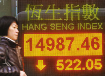 美股回升,令港股7日高開,但恒指瞬即掉頭向下,跌足全日,主要因?yàn)槊楞y減持建行的消息,使一眾中資銀行股被拋售,加上內(nèi)地3G正式發(fā)牌,投資者遂趁高位沽貨離場,令港股失守15000點(diǎn)關(guān)口,全日跌522點(diǎn),收報14987.4點(diǎn),跌幅3.4%,成交高達(dá)900億元,創(chuàng)逾3個月以來新高。即月期指7日報15064點(diǎn),跌470點(diǎn),仍高水77點(diǎn)。