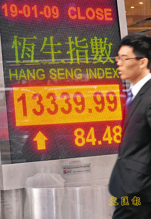 美國假期20日晨休市,港股好淡爭持,美國總統(tǒng)奧巴馬即將宣誓就任原屬利好消息,但匯控繼續(xù)疲弱,19日再跌3%,令大市大部分時間疲弱,全日只微升84點,報13339點,成交379.6億元。港股波幅不算大,但走勢反復(fù),恒指先高開后下跌,跌至下午2時半后反彈,最低見過13097點,其后大市由跌轉(zhuǎn)升,形成“N”形走勢。