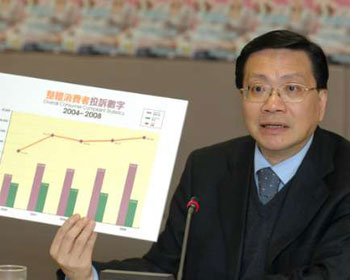 消委會(huì)去年接獲4.2萬宗投訴,較前年增加3500宗,打破歷年紀(jì)錄。張炳良總結(jié)數(shù)字時(shí)表示,投訴個(gè)案創(chuàng)新高,主要是消費(fèi)者于去年面對(duì)金融危機(jī),令金融服務(wù)投訴大幅攀升,增幅超過10倍。若“扣除”9200多宗金融服務(wù)投訴個(gè)案,多項(xiàng)主要類別投訴均下降,包括電訊、商品和服務(wù),而涉及旅客投訴也減少。