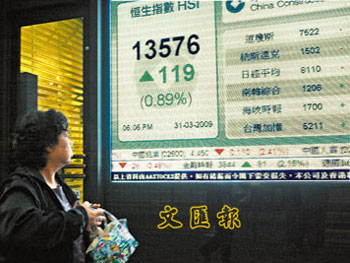 中新網(wǎng)4月1日電 據(jù)香港《文匯報(bào)》報(bào)道,3月31日是港股今年首季最后一個(gè)交易日,大市收升119點(diǎn)報(bào)13576點(diǎn),但首季計(jì)跌達(dá)5.6%,或811.46點(diǎn),跌幅在亞太區(qū)排第3。大市市值蒸發(fā)約2740億元,余下約10萬億元。分析員指出,大市3月份走勢有好轉(zhuǎn)跡象,但在1.4萬點(diǎn)見阻力,料第二季仍為波動(dòng)市,將在1.3萬-1.4萬點(diǎn)上下。
