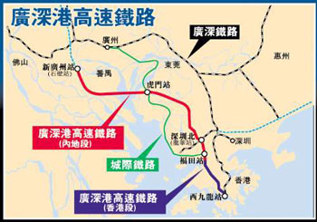 上月,香港與內(nèi)地就香港納入內(nèi)地高速鐵路網(wǎng)絡(luò)簽署備忘錄。為加快實(shí)現(xiàn)有關(guān)銜接,港府消息人士表明,廣深港高速鐵路香港段的興建,將爭(zhēng)取比原定2015年完工的目標(biāo),提早一年,于2014年竣工。根據(jù)政府計(jì)劃,鐵路最快于年底動(dòng)工興建。