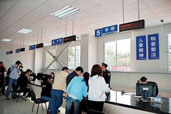 四月一日,深圳居民擴(kuò)大個(gè)人游香港試點(diǎn)啟動(dòng),同時(shí)該市公安局出入境辦證大廳啟用。 中國(guó)公安部決定,自2009年4月1日開始實(shí)施為深圳戶籍居民辦理一年多次往返香港個(gè)人旅游簽注,新政策將惠及除國(guó)家登機(jī)備案工作人員之外的二百二十多萬居民。 中新社發(fā) 陳文 攝