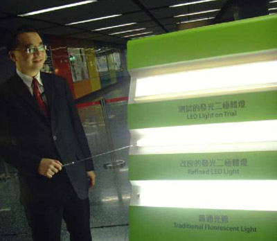 港鐵去年初耗資四百萬(wàn)港元,在港島、荃灣及將軍澳三趟市區(qū)地鐵列車(chē)進(jìn)行車(chē)廂LED環(huán)保燈測(cè)試計(jì)劃,港鐵總結(jié)稱(chēng),測(cè)試收到良好效果,除能有效節(jié)省能源外,LED燈的壽命較傳統(tǒng)光管耐用高四倍,達(dá)五萬(wàn)小時(shí),且更換時(shí)只需換走芯片便可,不會(huì)釋放水銀和制造光管垃圾。同時(shí)LED光線(xiàn)更接近自然日光,并不會(huì)釋放紫外光,可保護(hù)乘客眼睛,在測(cè)試期間廣為乘客歡迎。