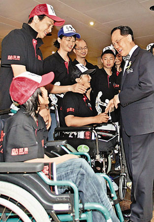 中新網(wǎng)5月13日電 據(jù)香港《文匯報(bào)》報(bào)道,在地動山搖后的一片頹垣敗瓦中,他們縱使傷痕累累,依舊堅(jiān)強(qiáng)地“站起來”,活出生命的精彩。在參觀“蜀港同心 大愛無疆──汶川大地震一周年紀(jì)念圖片展”后,香港特首曾蔭權(quán)伉儷、中聯(lián)辦主任高祀仁與在地震中因肢體損傷而截肢的多名傷員逐一握手與交談,簡單的“打氣”鼓勵。