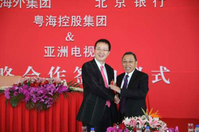 簽署儀式11日早在北京飯店舉行,由亞視行政總裁胡競(jìng)英跟中國(guó)人壽、招商銀行、中國(guó)海外集團(tuán)、北京銀行、粵海控股集團(tuán)五間企業(yè)的高層簽署戰(zhàn)略合作協(xié)議。查懋聲、多位亞視高層、過(guò)百名政商界人士出席,場(chǎng)面熱鬧。王征以主持身份逐一介紹嘉賓,并由查懋聲首先致詞。