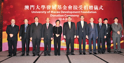 另外,澳大前日舉行隆重的捐贈儀式,由何鴻燊博士的代表蘇樹輝、呂志和基金有限公司的代表呂耀生、澳門霍英東基金會的代表霍震寰以及曹其真向澳大發(fā)展基金會致贈共1.2億捐款,并由澳門特別行政區(qū)行政長官、澳大校監(jiān)崔世安博士代表接收。是次捐贈將作為基金會的永久性基金,將按有關(guān)住宿式書院運作的實際需要而提供資助,如設(shè)立獎學(xué)金、獎項、學(xué)術(shù)演講、外訪活動、交流生計劃等。