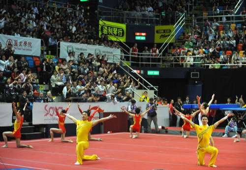 國(guó)家隊(duì)稍后再度登場(chǎng),男隊(duì)隊(duì)長(zhǎng)陳一冰的吊環(huán)示范令伊館再次響起不絕的掌聲。蕭欽在完成鞍馬表演后,并與鄒凱合演雙人鞍馬,將男子跳馬力量與速度兼?zhèn)涞奶攸c(diǎn)表露無(wú)遺。在數(shù)十個(gè)表演項(xiàng)目完成后,國(guó)家隊(duì)以集體技巧表演壓軸,并與香港隊(duì)謝幕,結(jié)束一場(chǎng)精采絕倫的表演盛會(huì)。