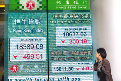 藍(lán)籌股2日普遍向下,當(dāng)中以匯控帶頭下跌,全日挫3.9%,跌回68.05元水平,拖累恒指跌147點(diǎn),中移動沽壓也大,挫3.9%。金融股及地產(chǎn)股回吐顯著,國指跌300點(diǎn)至10637.6點(diǎn)。