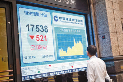 港股23日裂口低開(kāi),一度急跌近700點(diǎn)至17375點(diǎn),午后跌幅一度收窄至17683點(diǎn),但全日仍挫521點(diǎn),收市報(bào)17538點(diǎn),跌幅是3月以來(lái)最大,成交664億元。匯豐的季度調(diào)查顯示,40%基金經(jīng)理建議減持股票。