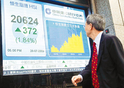 中新網(wǎng)7月29日電 據(jù)香港《文匯報》報道,港股連續(xù)第4天上升,恒指28日早段表現(xiàn)反復,一度回吐142點,午后在中移動等續(xù)炒A股回歸概念股,以及地產(chǎn)股帶動下,才展現(xiàn)升幅,恒指曾經(jīng)高見20664點,升逾410點。最終全日報20624.5點,升372.9點,升幅1.8%,再創(chuàng)“雷曼爆煲”后新高,成交額增至852.5億元。