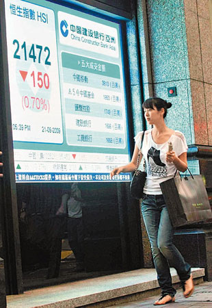 匯控跌0.27%,收報90.95元,結(jié)束連升4天的強勢。中移動逆市升0.58%,報78.4元。內(nèi)銀股跌幅較大,中行挫3.2%,信行跌2.4%,工行跌2.3%。地產(chǎn)股及航運股弱勢,恒地挫3.1%,有李嘉誠增持的長實跌0.75%,收市報99.1元,中遠洋跌1.8%,太航跌2.2%。