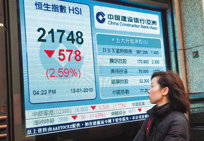 人民銀行周二晚出其不意宣布上調(diào)銀行存款準(zhǔn)備金率50個(gè)基點(diǎn),凍結(jié)近3000億元人民幣資金,市場(chǎng)擔(dān)憂內(nèi)地收緊銀根措施陸續(xù)有來,拖累亞太區(qū)主要股市急挫。市場(chǎng)12日晚普遍預(yù)期13日港股會(huì)跌約300至400點(diǎn),結(jié)果跌幅更超預(yù)期。恒指低開336點(diǎn),午后跌幅擴(kuò)大,最多跌638點(diǎn),收市報(bào)21748.6點(diǎn),跌578點(diǎn),跌幅達(dá)2.6%。