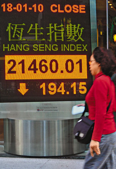 中新網1月19日電 據香港《文匯報》報道,承接美股弱勢,港股18日低開227點后,最多跌過334點,其后在中資金融股反彈下,下午跌幅進一度收窄至不足10點,但其后跌幅再擴大,最終收報21460點,跌194點,總成交695億元,是連續(xù)5天跌市,全日高低波幅325點。